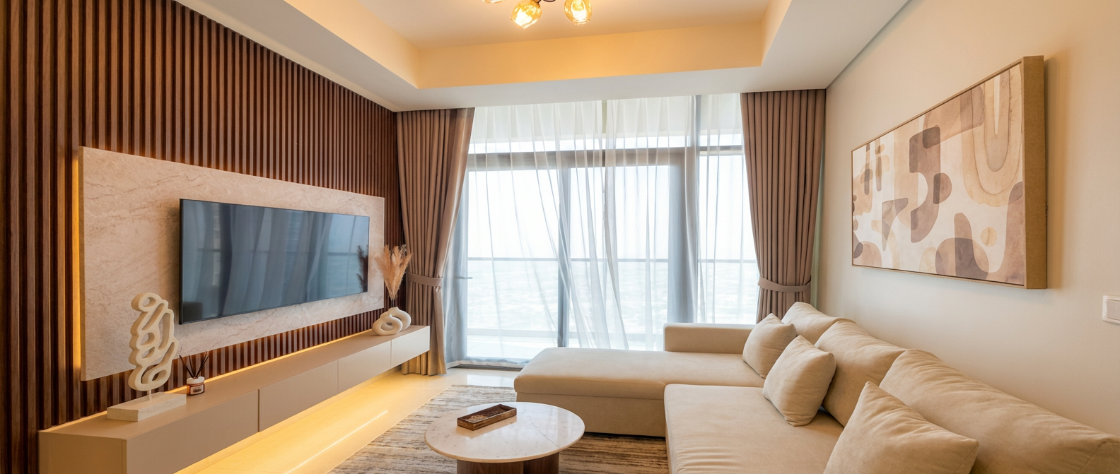 This well-designed 90 m² (968 sqft) residence offers 1 spacious bedroom, 2 modern bathrooms, and a functional layout that balances privacy and everyday practicality.